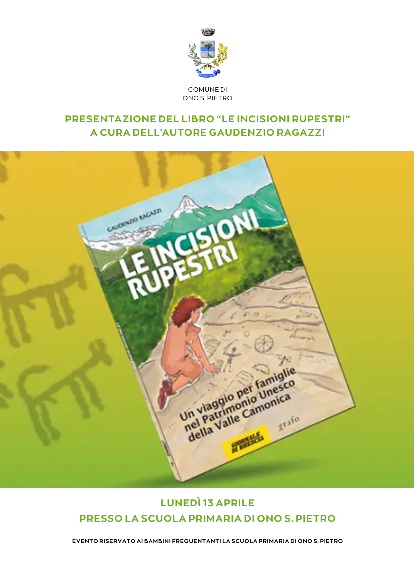 Presentazione del libro Le Incisioni Rupestri lunedì 13 aprile presso la scuola primaria di Ono San Pietro